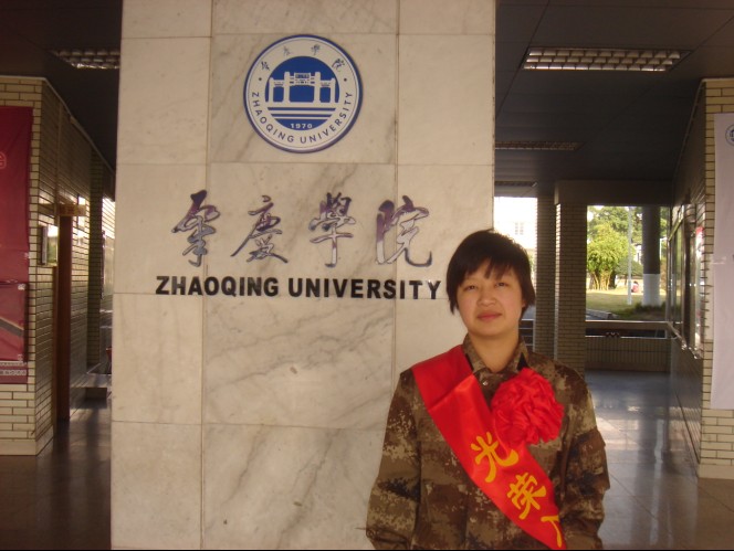 本网讯(武装部 报道)2011年冬,我校被肇庆市端州区人民政府批准入伍的12名同学中唯一一名女生——在北京军区第27集团军某部服役的体育与健康学院11体教2班学生龚传燕同学,自觉遵守部队的条令、条例和各项规章制度,严格要求,严格训练,政治素质、军事素质和业务素质好,深受部队领导和同志们的好评,2012年11月,被评为优秀士兵。两年服役期满后,因部队工作需要,龚传燕同学决定立志军营,继续为国防建设做贡献。现已被所在部队批准由义务兵转改为一级士官。