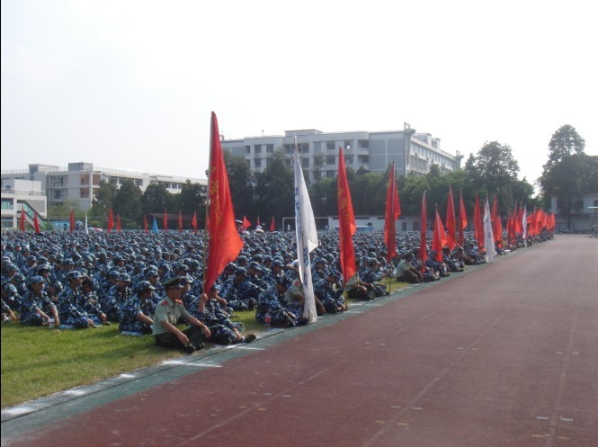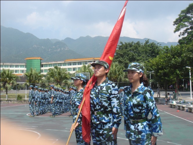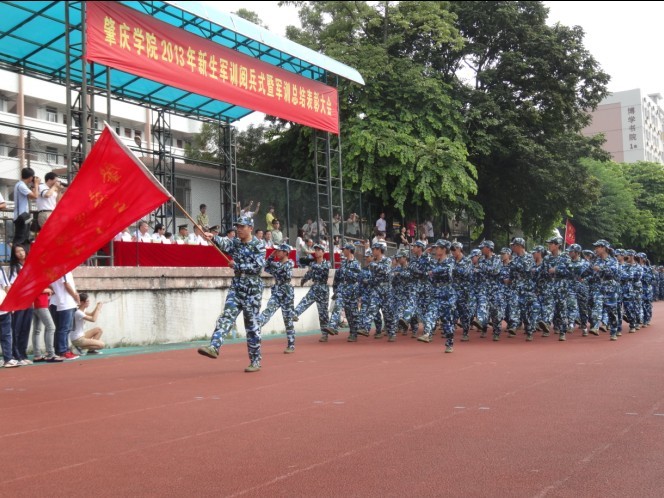 “向右——看!”“一 —— 二 ——”一个个新生方队踩着《分列式进行曲》铿锵的节奏,踢着整齐有力的正步,以饱满的精神和压倒一切的气势,雄赳赳、气昂昂在主席台前通过,展示了同学们坚强的意志和坚定的信念。军训中被晒得黝黑的面孔使同学们蜕去了稚气,甩掉了柔弱,显得更加健康、更加成熟。