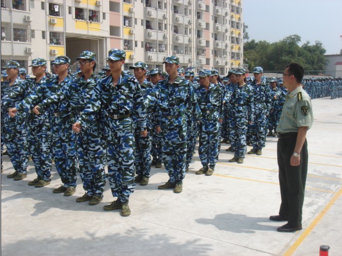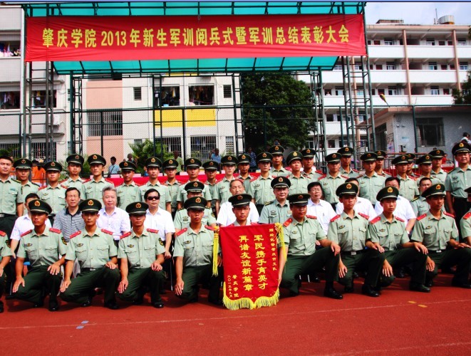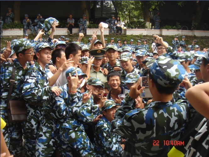军训总结表彰大会结束后,领导与教官合影