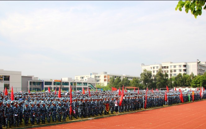 2013年9月22日上午,我校5600多名2013级新生分编而成的57个方队,环田径场整齐地列队,接受和飞校长的检阅。