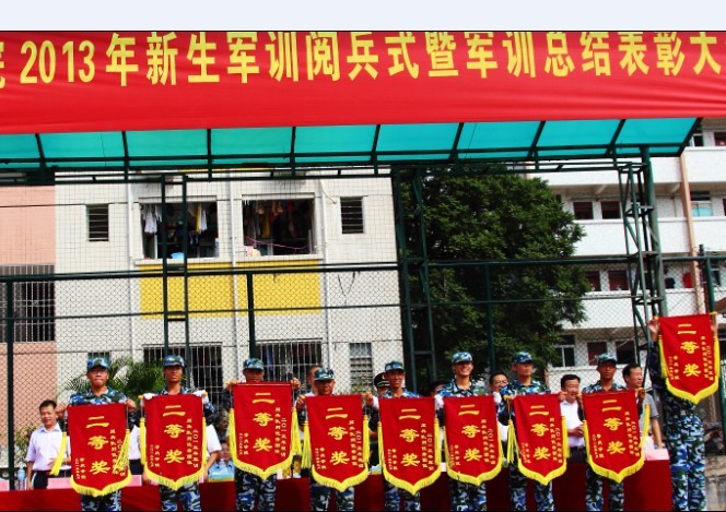 音乐学院的九连,政法学院的十七连、十九连,经济与管理学院的二十四连,计算机学院、软件学院的二十六连,文学院的三十七连,外国语学院的四十五连,电子信息与机电工程学院的五十四连、五十六连、五十七连等10个方队获得“阅兵队列优秀团体”二等奖;