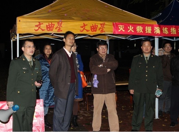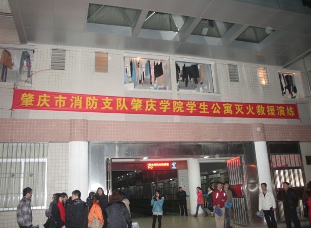 本网讯 高校学生宿舍因人员高度密集,一直以来是高校消防工作的重中之重。为增强学生消防安全意识,提高消防部队对人口密集场所火灾事故的救援能力,12月29日晚,肇庆市消防支队在我校E幢学生公寓进行了灭火救援演练。校党委副书记叶峥嵘现场观摩了本次演习。