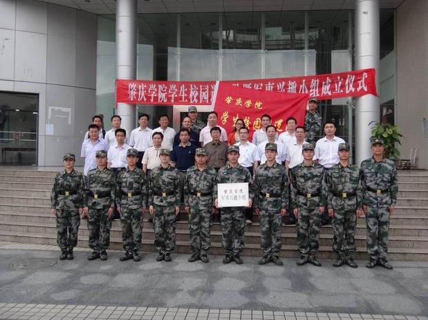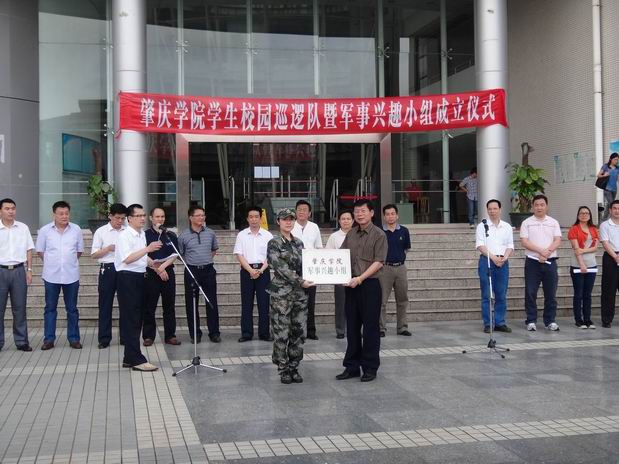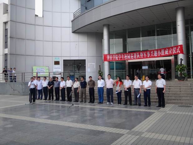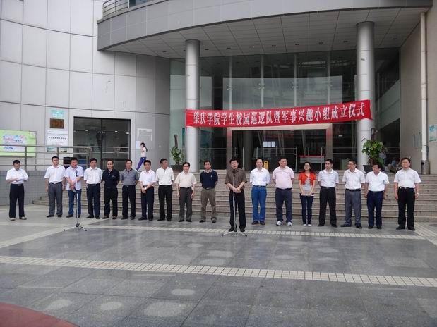 宣传部、学生处、武装部、保卫处等有关部门的领导,各二级学院党委副书记及学生代表共100多人参加了仪式。学生校园巡逻队队员代表罗思来、军事兴趣小组组长黎渊发了言。