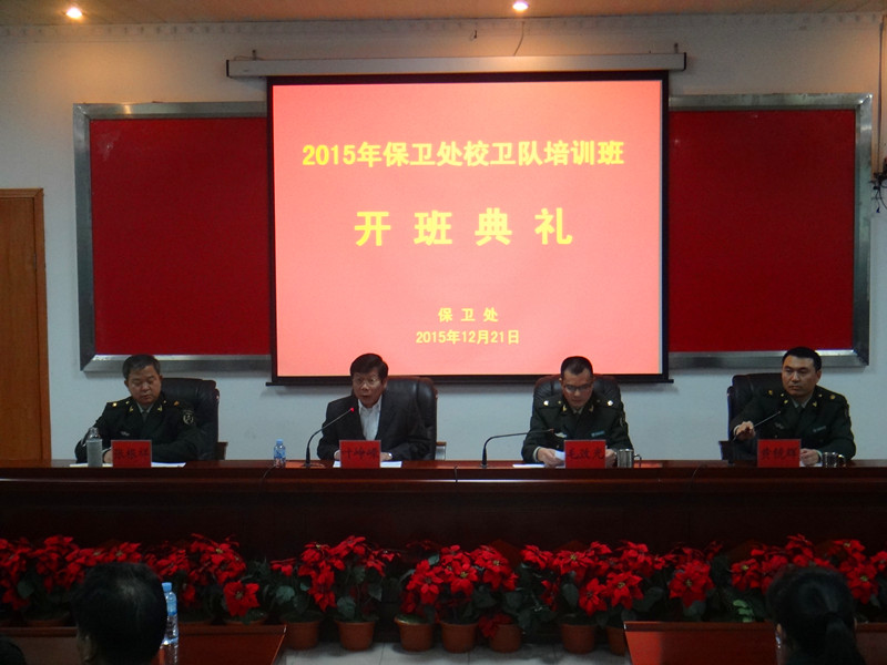 2015年12月21日下午,我校保卫处校卫队培训班在第二会议室举行开班典礼。保卫处全体干部职工及校卫队员共70人参加开班典礼。学校党委副书记叶峥嵘出席并作讲话。开班典礼由保卫处副处长黄镜辉主持。