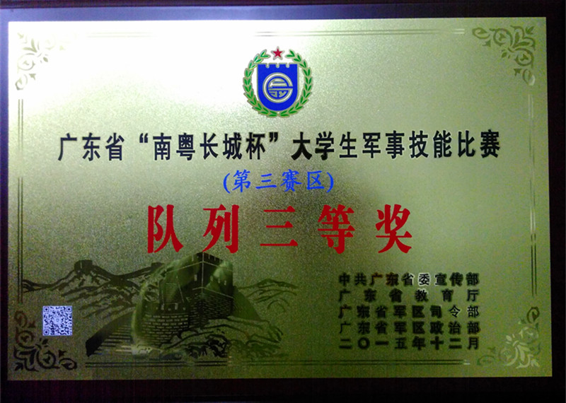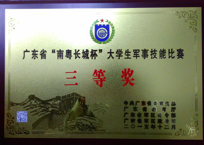 12月26日上午,广东省“南粤长城杯”大学生国防军事技能比赛汇报表演暨颁奖活动在华南师范大学举行,省军区、省委宣传部、省教育厅等领导出席颁奖活动,我校武装部副部长张根祥代表学校参加活动。