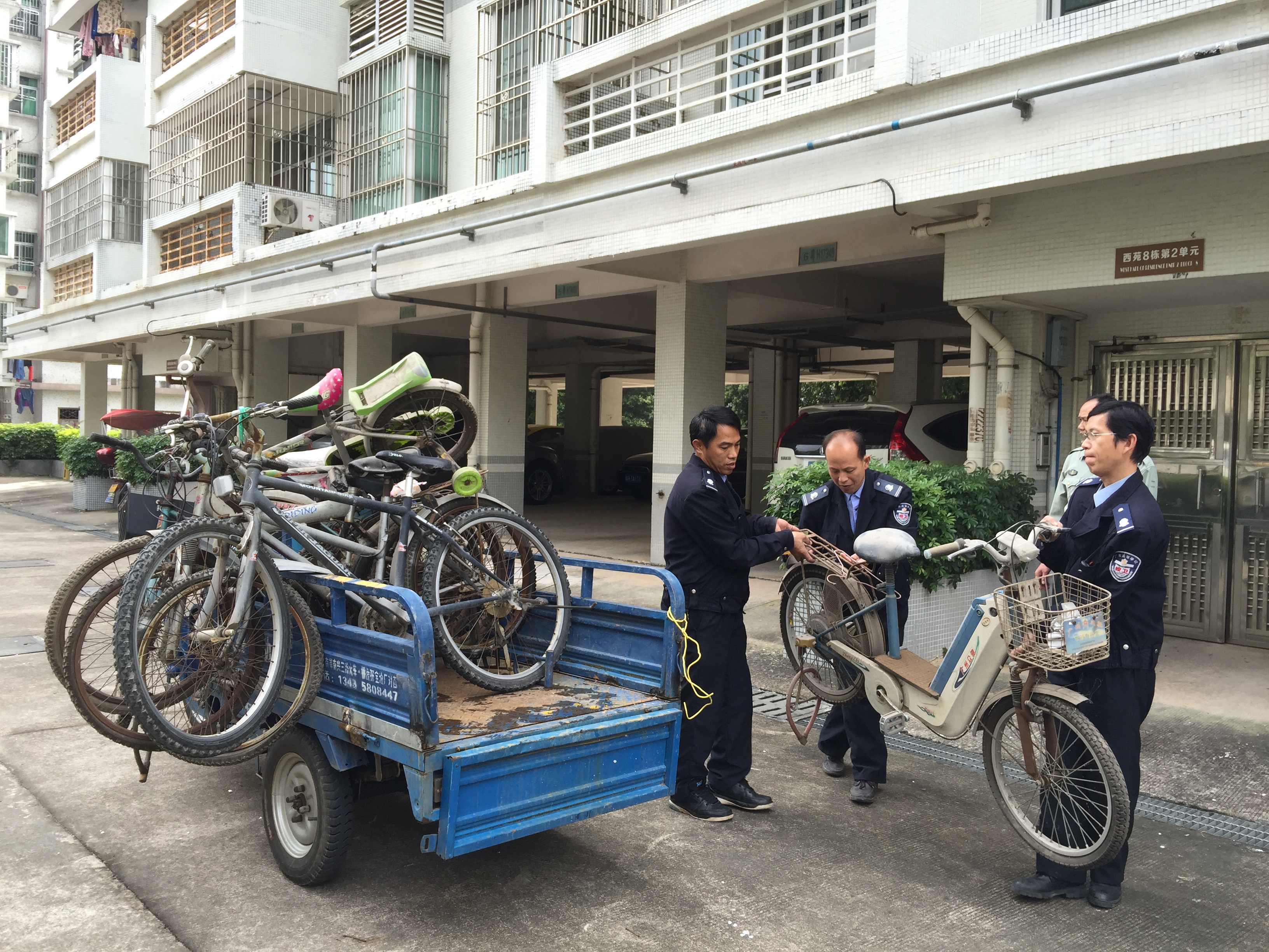 活动开始,我处与后勤管理处分头行动,分别针对废旧车辆、杂物进行清理。经过整治,我处共处理废旧自行车50余辆、摩托车及助力车20余辆,学校教工宿舍环境脏乱情况得到改善。