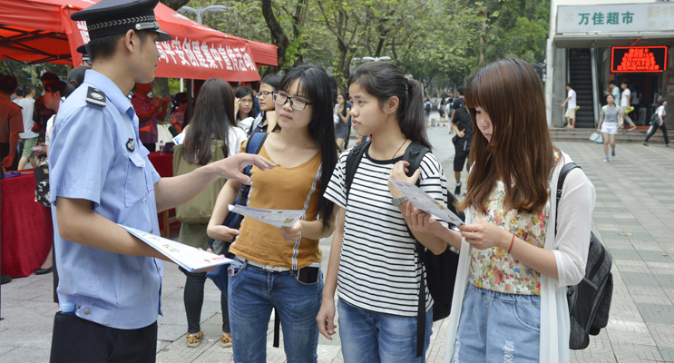 活动现场设在我校紫荆路上,端州公安分局民警向学生派发防骗宣传册,向他们讲解常见的电信网络诈骗犯罪的作案手段、识别方法、防范措施等,同时接受同学们的咨询,引导学生培养防范意识,增强防范能力,提高自身安全防范水平。