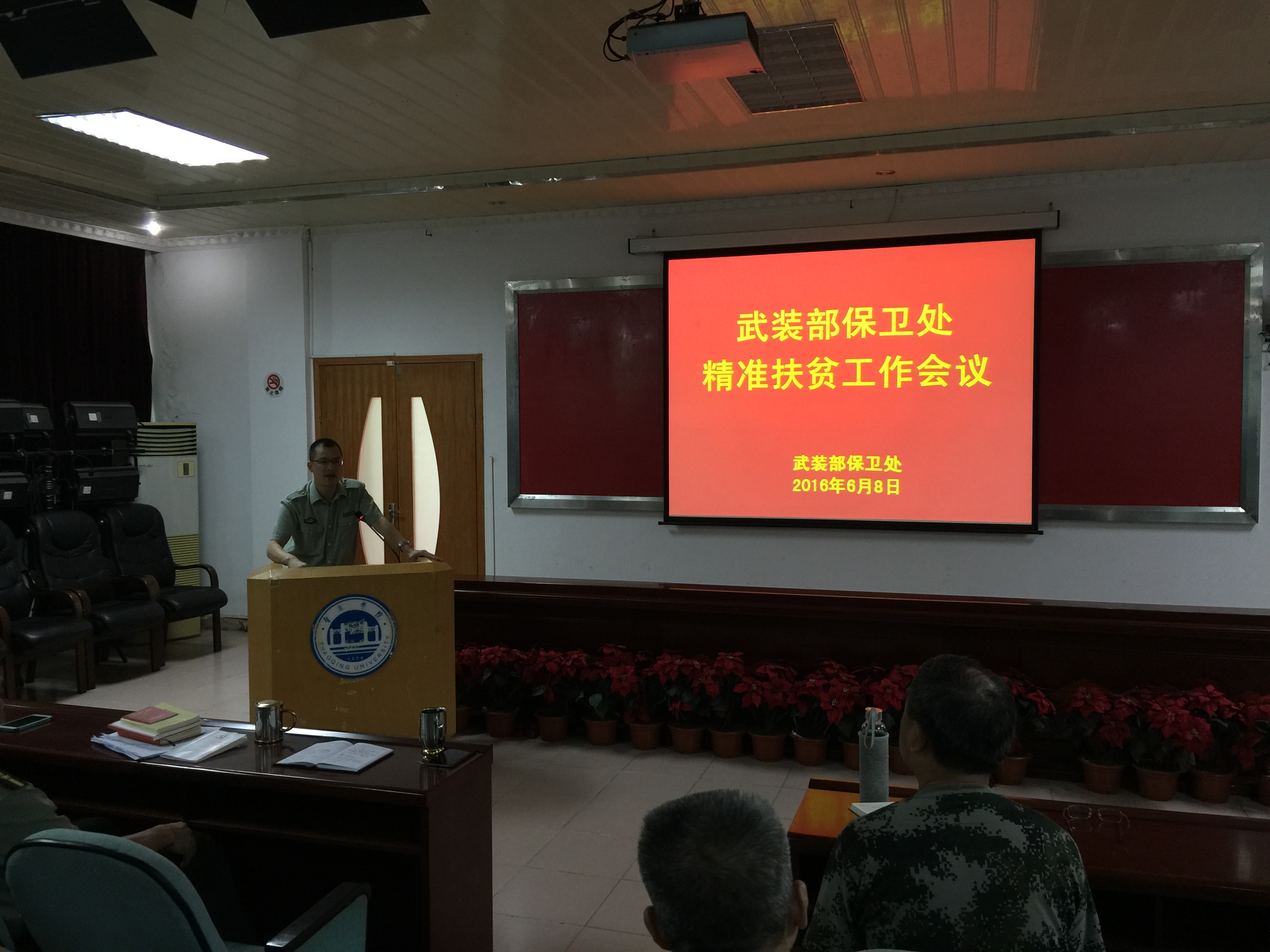 6月8日上午,我处在第二会议室召开武装保卫党支部“两学一做”专题会议暨精准扶贫工作会议,处全体党员参加。 会上,支部书记黄镜辉传达“两学一做”重要指示精神及学校党委关于开展“两学一做”学习教育的系列讲话与要求,并动员部署支部“两学一做”学习教育工作,要求深入开展专题党务工作。 随后,全处党员观看了精准扶贫相关录像,毛致光处长传达学校相关文件精神与具体措施,就下一步工作提出建议与要求,号召全体党员积极做好各项帮扶工作,以出色的成绩完成上级安排的扶贫任务。