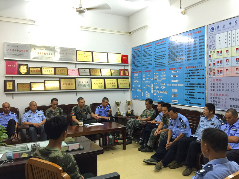 7月17日晚,针对近期校园较为复杂的情况,同时为更好地维护师生员工的生命财产安全,我处召开校卫队员工作会议,就进一步做好校园暑期安全工作进行全面部署。 会上,黄副处长要求全体队员值班期间带齐防卫装备、保证对讲机正常使用,并指出做好假期校园安保工作需要常抓不懈,只有做好本职工作,才能为保障校园安全作出应有的贡献。