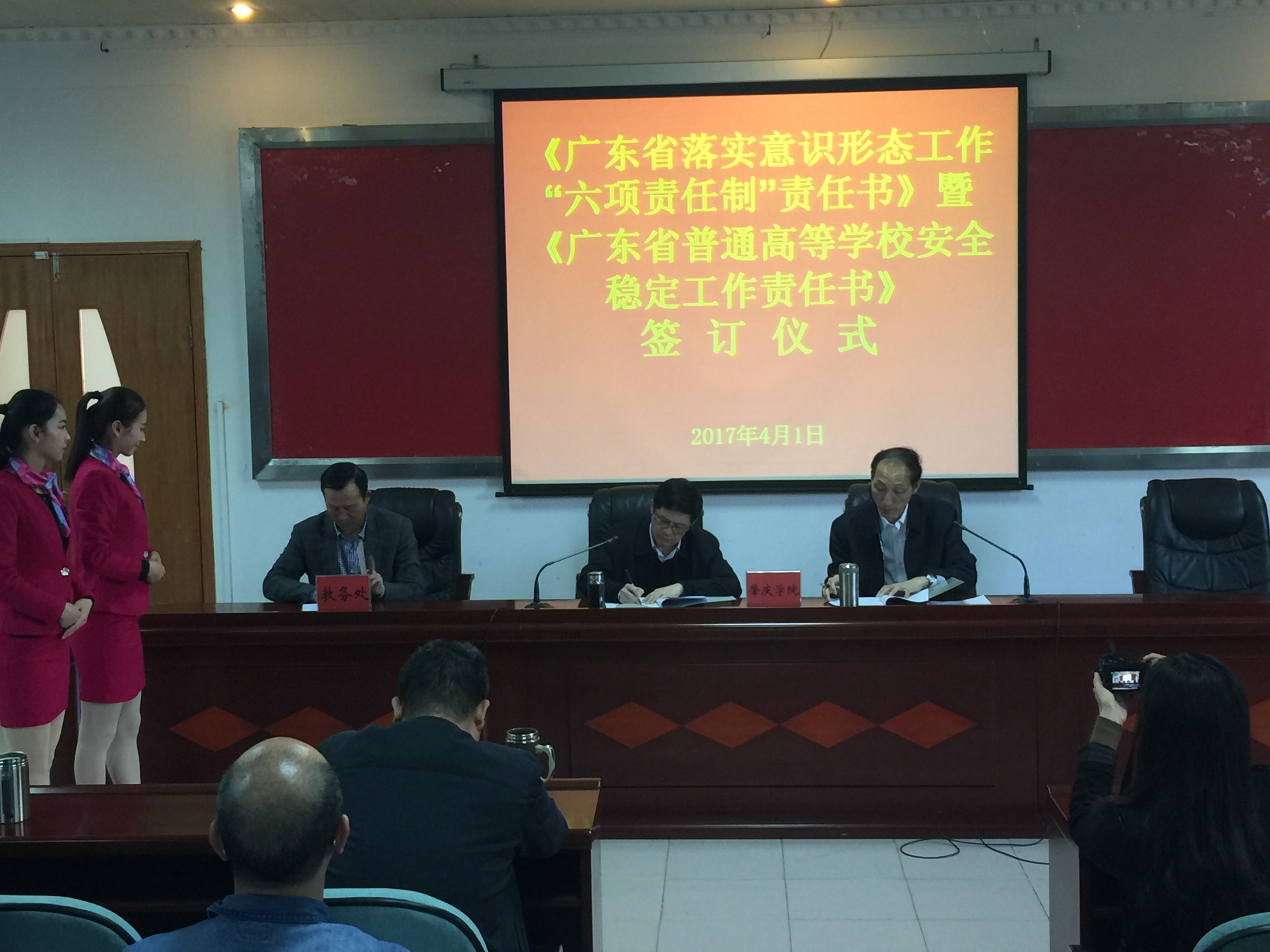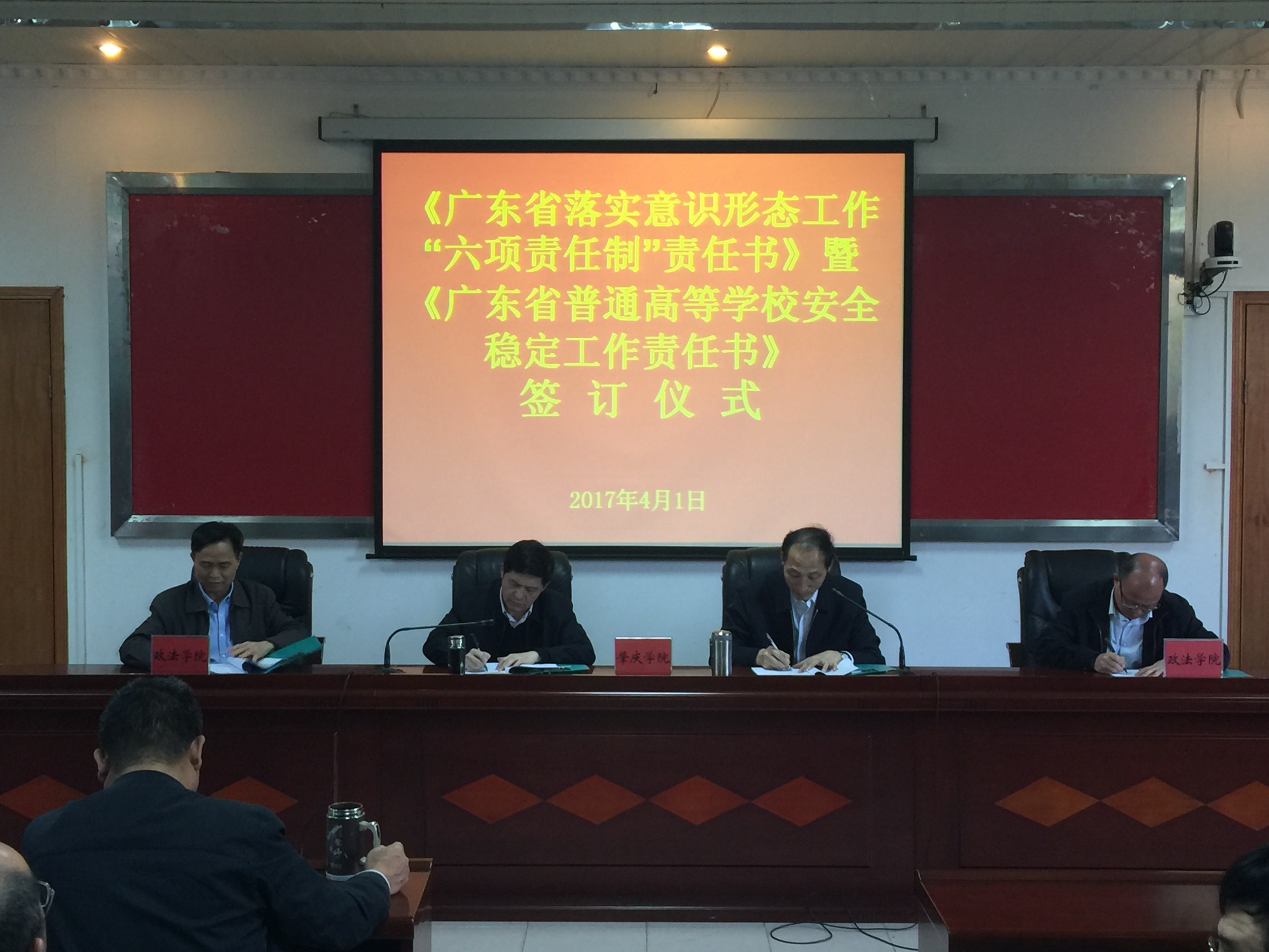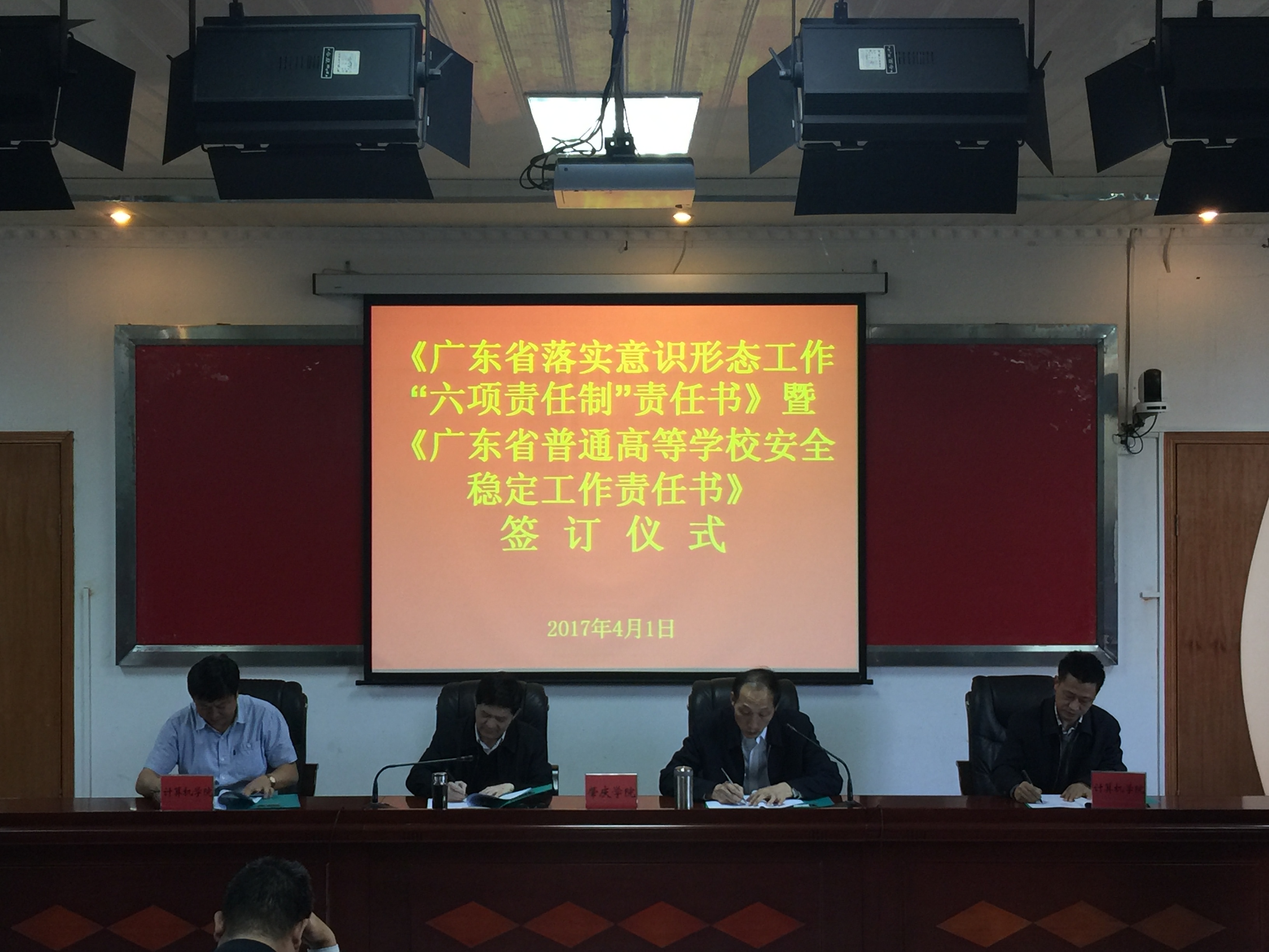 会上曾桓松、和飞代表学校与各二级单位单位签订《英国威廉集团官网落实意识形态工作“六项责任制”责任书》与《英国威廉集团官网2017年安全稳定工作责任书》。