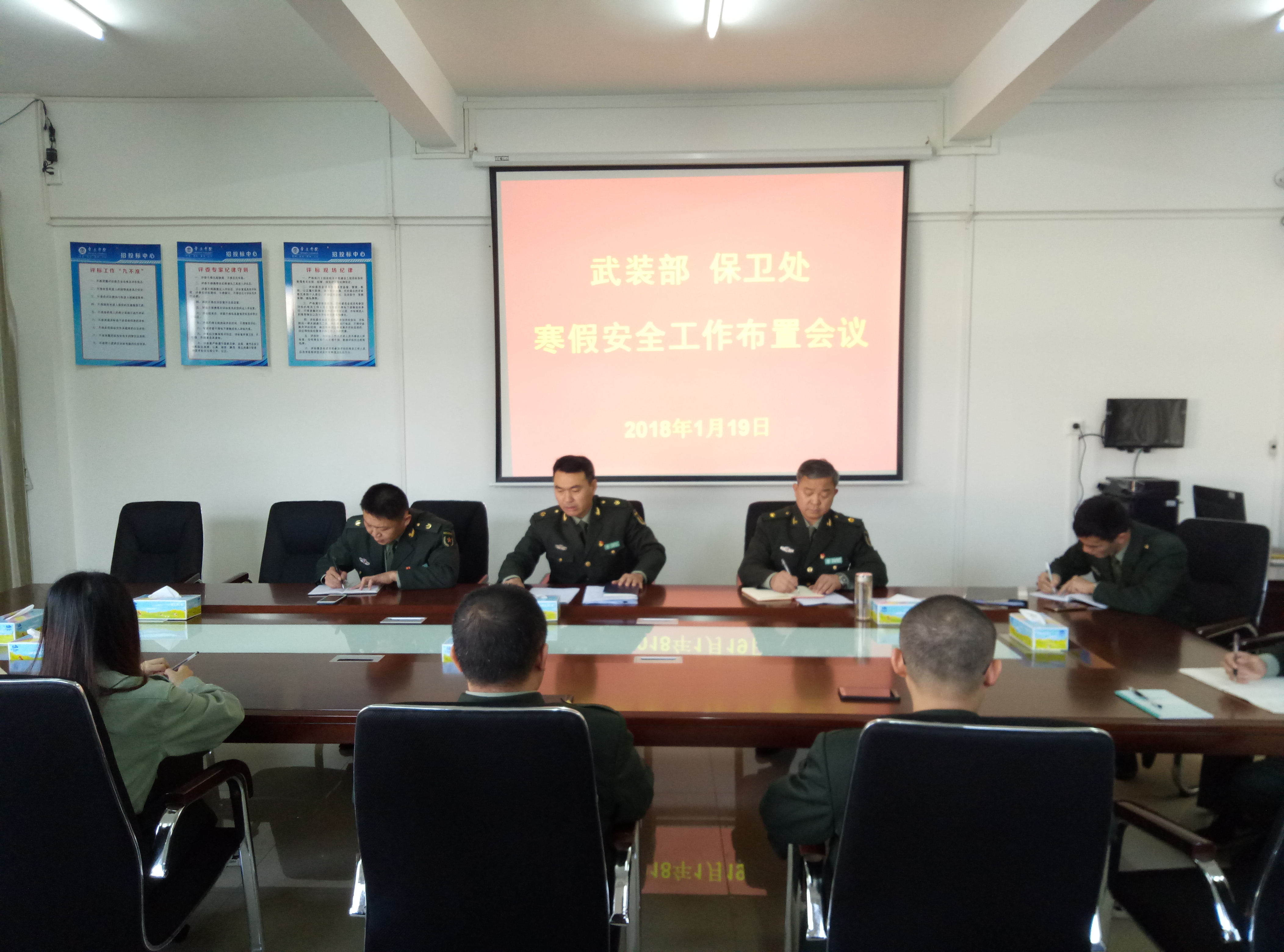 为贯彻落实我校寒假期间安全工作的要求,进一步巩固平安校园的创建成果,保障师生员工能度过一个平安祥和的假期,1月19日上午,我处召开寒假安全工作布置会,全体干部职工参加。