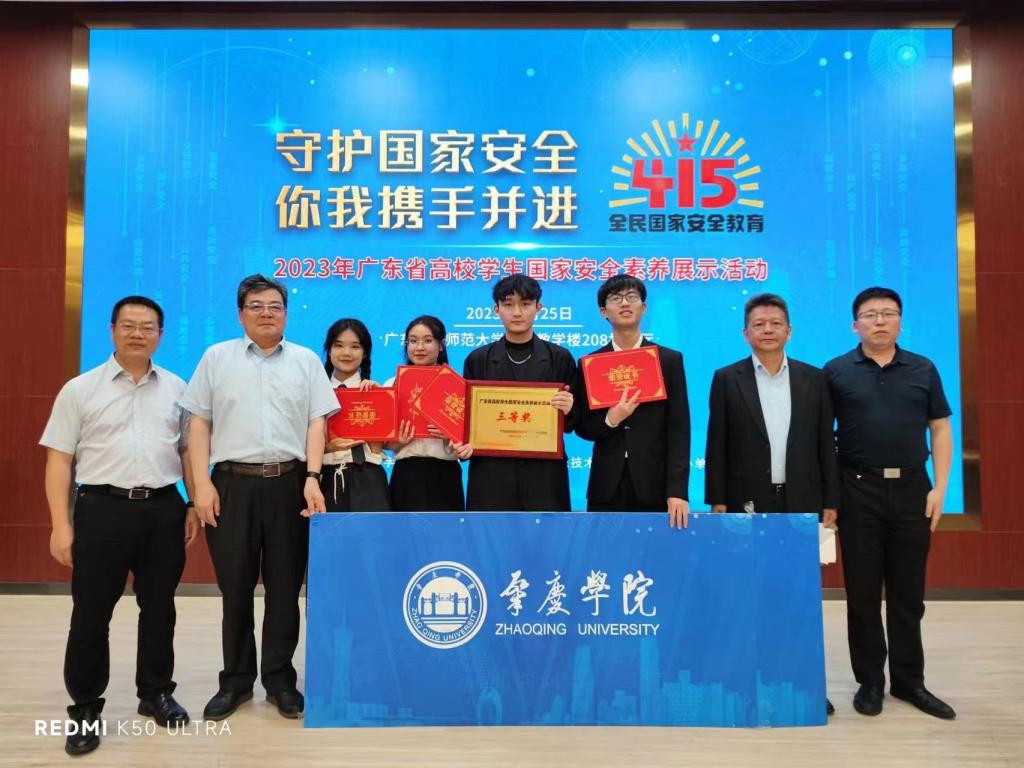 为贯彻落实习近平总书记关于总体国家安全观的系列重要论述精神,学校党委高度重视在大学生中开展国家安全教育。我处会同宣传部、学工处、团委等部门及各学院,在校内举办形式多样的国家安全教育活动。3月25日,我处联合团委组织学生参加由广东省高等教育学会保卫学专业委员会在广州主办的广东省高校学生国家安全素养展示活动决赛,我校代表队由教育科学学院2019级学生曾毅晴,美术学院2020级学生田渊,政法学院、知识产权学院2021级学生林迅,机械与汽车工程学院2022级学生杨毅程4人组成的参赛团队(指导老师:张志超、张洁),经过三轮比赛环节的角逐后,最终荣获比赛三等奖。