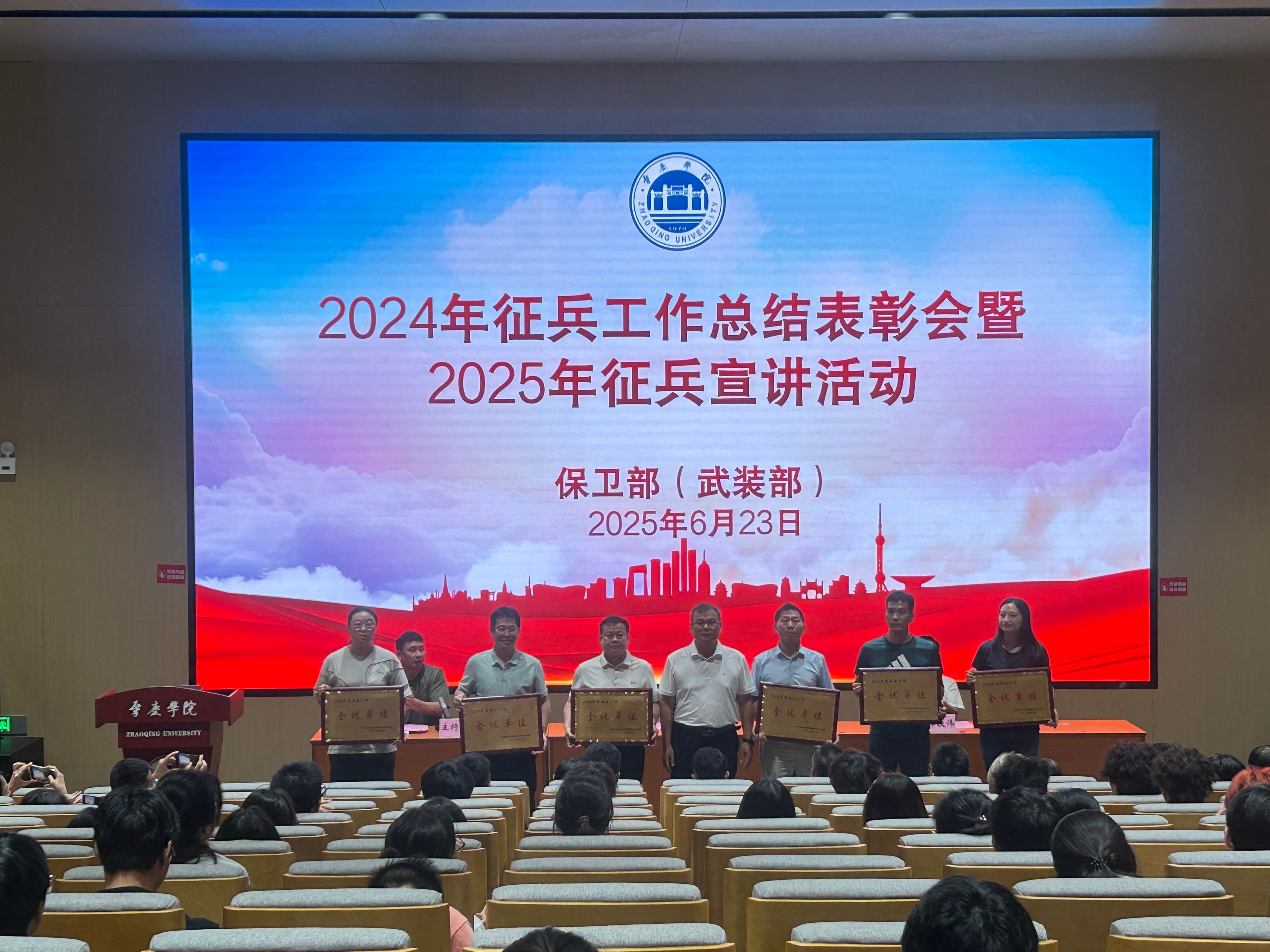 会议对2024年度在征兵工作中表现突出的集体和个人进行通报表彰。经济与管理学院等6个学院荣获“征兵工作全优单位”称号,体育与健康学院等8个学院荣获“征兵工作先进单位”,卢若蒙、查正辉等14名老师被评为“征兵先进个人”。