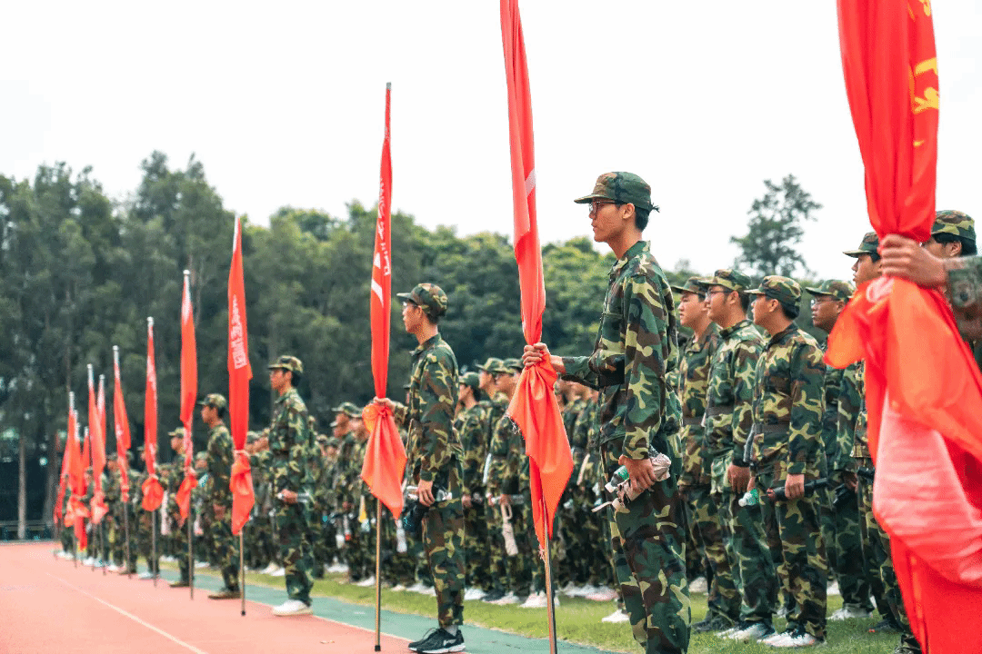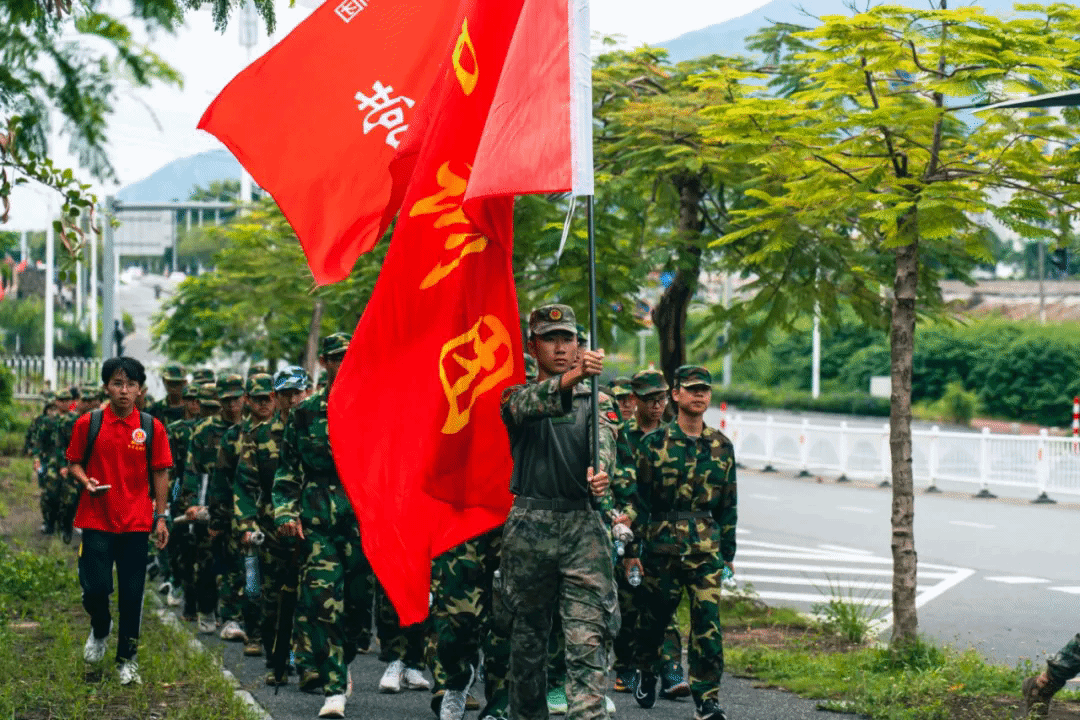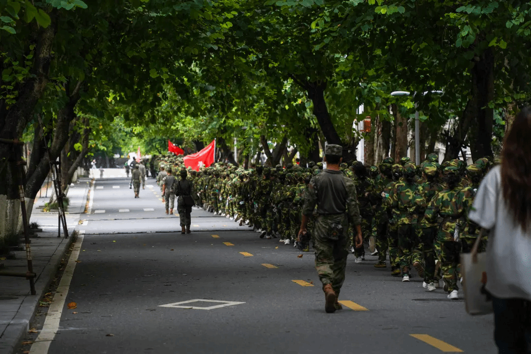 这一路上,军歌激昂,各营旗帜飘扬,徐徐朝前,新生们斗志昂扬,目光坚定如炬,耳听步履铿锵,良师为伴,同窗并肩,这漫漫征途,不再只是学子们的孤军独行,这一路,全体军训教官、带班党员、医护人员、安保人员,皆在默默守护着,为每一位“战士”保驾护航,未曾在半途停住的队伍,伴随声声士气高昂的口号声,循着红旗的方向直抵终点,汗滴早已浸透帽檐,沿途上,每一个积极阳光的笑容,都是这趟艰难旅程中最好的见证。