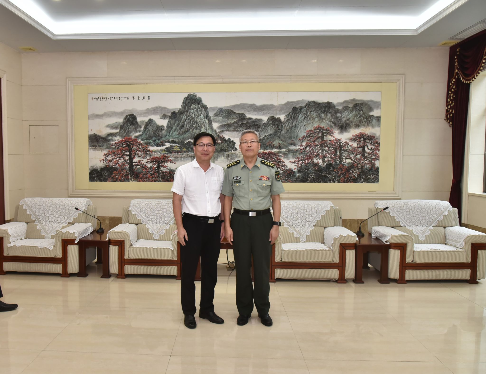 谢冠华介绍了学校的办学情况和教育教学成果以及新校区建设情况、武装工作等情况。谢冠华表示,学校党委历来高度重视征兵工作,一直从讲政治、顾大局的高度,认真做好大学生征兵工作,积极引导和鼓励更多的优秀大学生应征入伍、报效祖国。截至目前,学校今年春季已有35名学生应征入伍,秋季17名毕业生通过正式体检,收到了预定兵通知书,还有13名同学等待体检通知。他指出,我校将继续做好学生国防教育工作,大力宣传征兵政策,激励更多优秀大学生参军入伍,希望与军分区进一步加强合作交流,共创军校共建新局面。