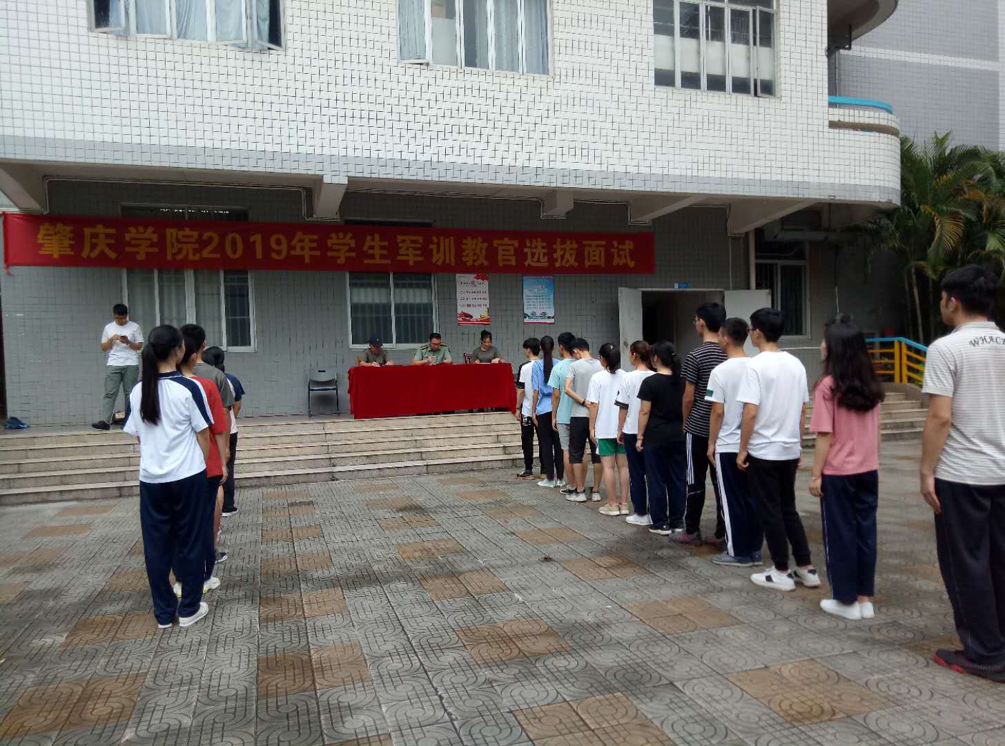 5月20日,我校武装部在第二教学楼西侧广场举行2019级学生军训教官选拔面试考核。校武装部黄镜辉部长、张根祥副部长现场指导。