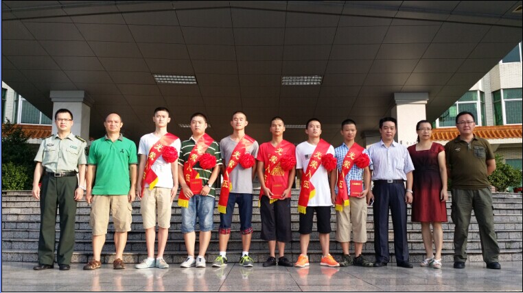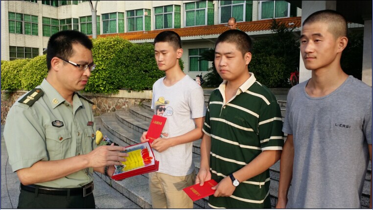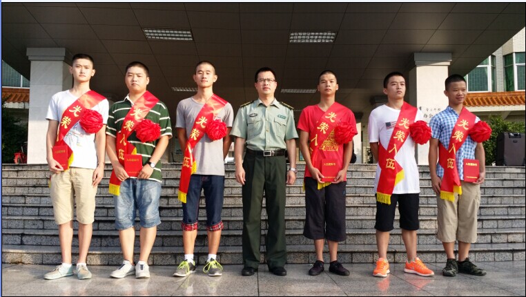 本网讯(武装部 报道)在2014年夏秋季征兵工作中,我校共有30名男生参加端州区征兵体检。经过初检、复查、政审、家访等环节,最后有7名同学被端州区人民政府征兵办公室批准入伍。他们是: