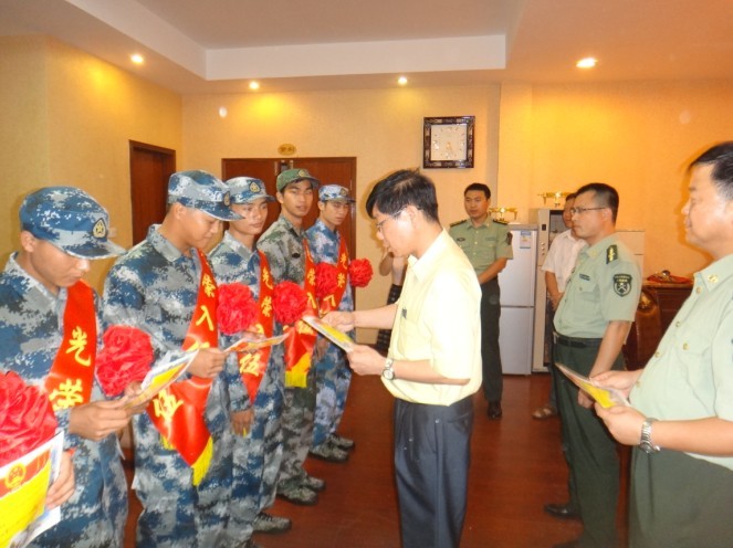本网讯(武装部 报道)根据国防部征兵办通知,从2013年起,全国征兵时间由冬季征兵调整为夏、秋季征兵,即每年7、8月份征兵,9月1日批准入伍,9月30日前征兵结束。为切实贯彻落实好国防部征兵办通知精神,做好2013年度征兵工作,我校领导高度重视,各二级学院提前进行宣传,校征兵办公室提前组织报名应征学生进行初检,对初检合格学生提前进行政治审查。最后,经肇庆市端州区人民政府征兵办公室批准,彭东俊等7名同学光荣入伍。我校圆满完成了今年征兵工作任务。