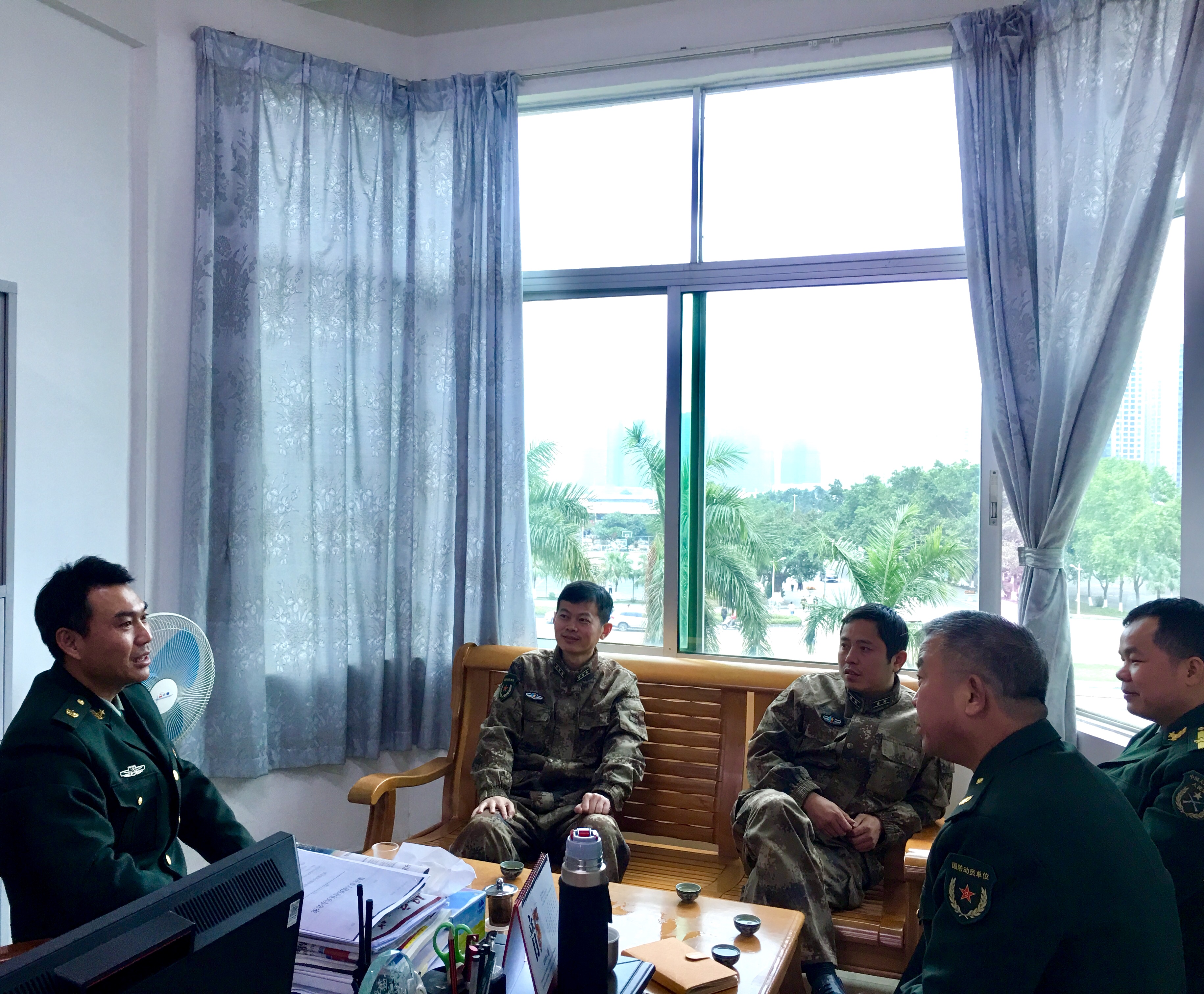 1月3日下午,端州武装部政委董园园,副部长李明一行莅临我校调研毕业生预征兵工作,我校武装部部长黄镜辉、副部长张根祥接待交流。