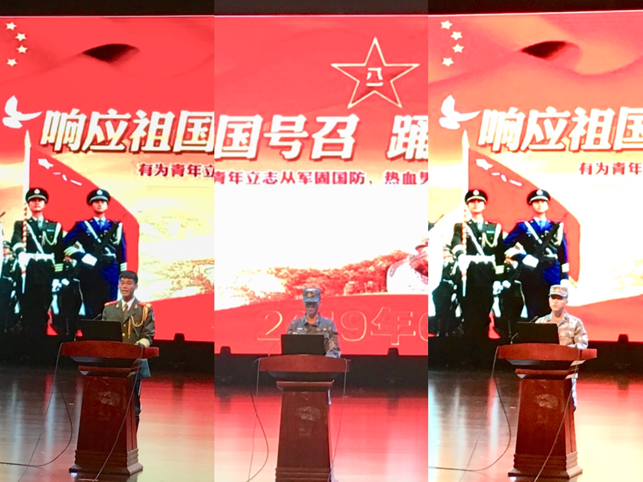 黄部长最后说,军号已吹响,祖国在召唤。同学们作为新时代的大学生,应积极报名应征,携笔从戎,建功军营,为实现中国梦、强军梦,做出积极的贡献!