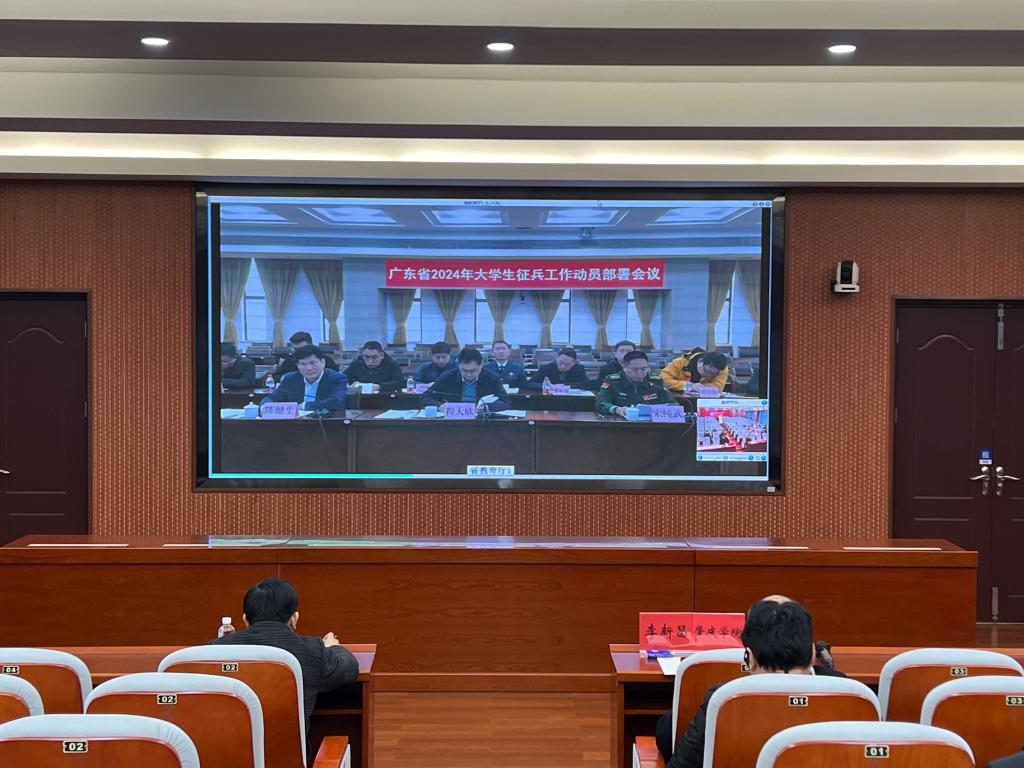2月27日下午,广东省教育厅组织召开2024年全省大学生征兵工作动员部署网络视频会议,我校在行政办公楼第二会议室设分会场。学校党委委员、副校长李新昌、武装部全体人员、各二级学院负责征兵工作的辅导员参加了本次会议。