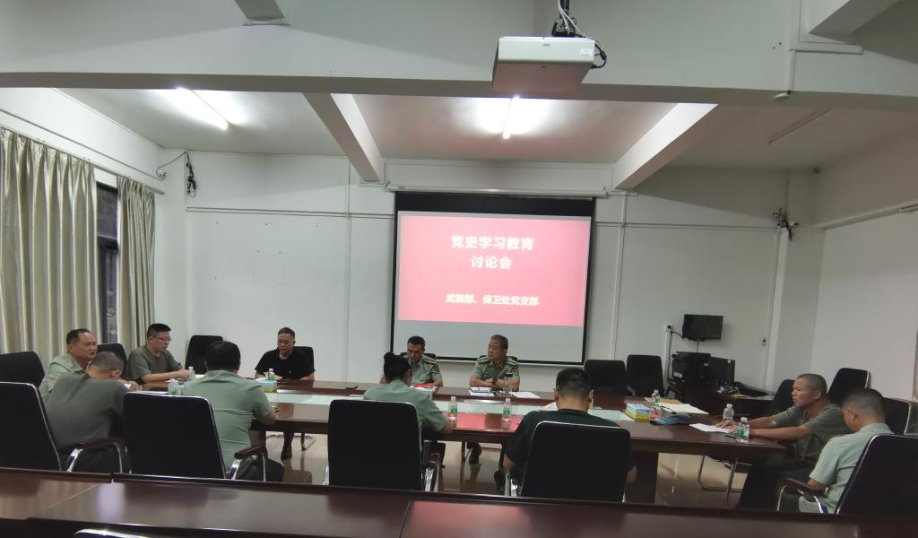 6月11日,武装部、保卫处党支部在行政楼第四会议室开展党史学习教育第八次专题学习会议,部处全体党员参加,会议由支部书记黄镜辉主持。