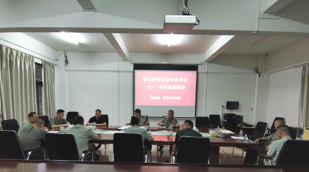 7月6日上午9时,武装部、保卫处党支部在行政楼第四会议室开展党史学习教育第十一次专题学习会议——学习贯彻习近平总书记“七一”讲话重要精神,部处全体党员参加,会议由支部书记黄镜辉主持。