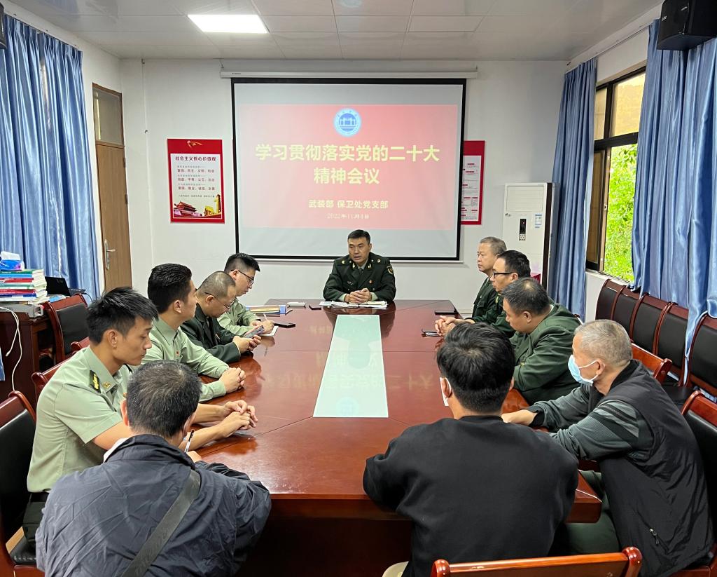 11月4日,武装部、保卫处党支部召开学习贯彻落实党的二十大精神会议。会议由党支部书记黄镜辉主持,部处全体党员参会。